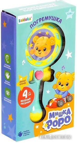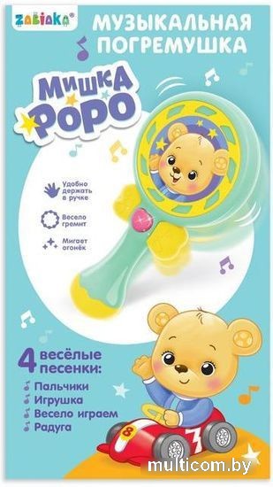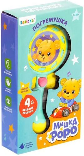 | Информация | Погремушка — первая и очень важная игрушка в жизни ребенка. С ее помощью кроха начинает познавать окружающий мир. Малыш услышит песенки: «Пальчики», «Игрушка», «Весело играем», «Радуга». Кроха увидит, как мигает волшебный огонек. Игрушка звонко гремит и привлекает внимание. Изделие удобно держать в маленькой ручке. Игра с погремушкой способствует развитию слухового и зрительного восприятия, мелкой моторики, реакции. |