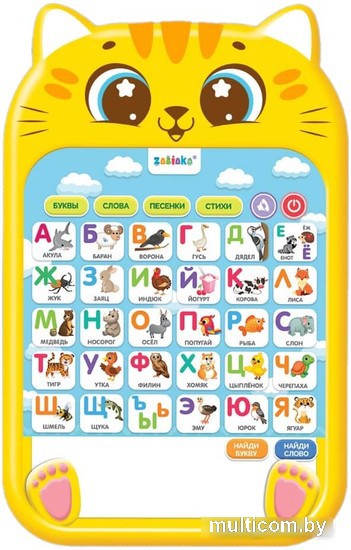 | Информация | ? Развивающая игрушка Zabiaka Обучающий планшет - это любимый котик 9873301. ? В комплекте не поставляются батарейки. |