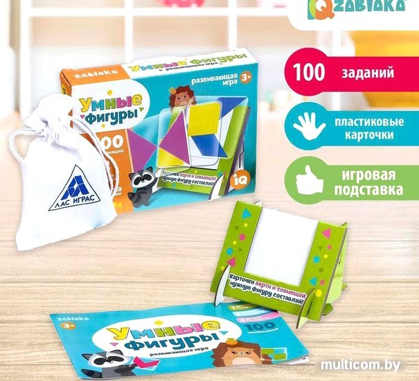 | Информация | Рассматривайте с ребёнком цветные фигурки на карточках, вертите и совмещайте их, получая новые комбинации. Набор удобен тем, что задания выстроены в логической последовательности — от простого к сложному. Такой способ сохраняет интерес ребёнка на протяжении всей игры. Как играть?Выберите задание в книжке-инструкции. Накладывайте карты друг на друга, чтобы получить выбранную комбинацию. Если у вас возникнут сложности, вы всегда сможете обратиться к подсказкам с ответами. Карточки верти и совмещай — нужную фигуру составляй! Ребёнка ждут целых 100 интеллектуальных заданий, яркие пластиковые карточки и игровая подставка. Набор рекомендован малышам старше 3 лет. Весёлой игры! |