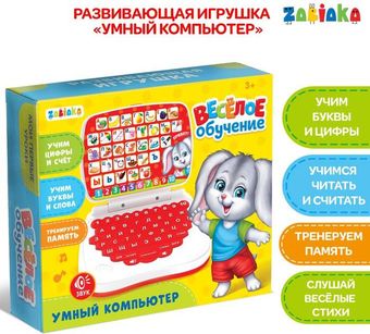 | Информация | «Умный компьютер» — это увлекательная развивающая игрушка, которая познакомит малыша с алфавитом, цифрами, основами счета, правописания и логики, а также развлечет стихами. Детский гаджет способствует улучшению памяти, логического мышления, цветового и звукового восприятия. Как играть: нажимайте кнопочки на клавиатуре и мониторе компьютера и выполняйте задания. Функции обучающего компьютера: «Учим цифры»: ребенок нажимает на кнопки и изучает счет. «Найди букву»: игрушка произносит букву, задача ребенка — найти ее на клавиатуре и нажать. «Правописание»: компьютер произносит слово по слогам. «Найди слово»: игрушка произносит слово, а ребенку необходимо набрать его на клавиатуре. «Стихи»: компьютер воспроизводит веселые стихи о цифрах. Громкость устройства регулируется. |