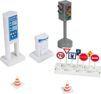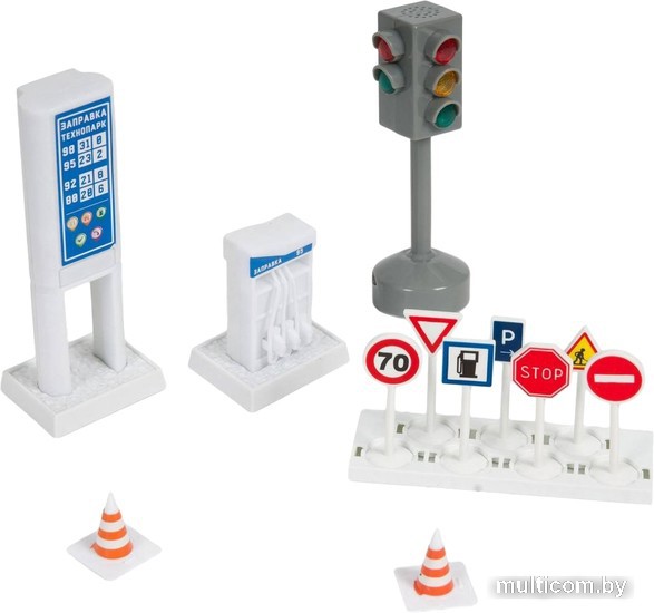 | Информация | Игровой набор из серии "Технопарк" в наборе дорожные знаки для игры. Светофор с подсветкой. Теперь в игрушечном городке появится автозаправка и настоящая дорога со светофором и дорожными знаками - аварий станет меньше! Игрушечный светофор работает от батареек. |