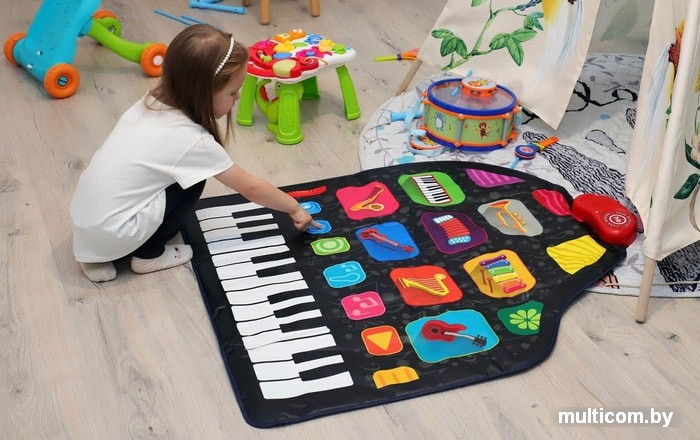 | Информация | Большой игровой музыкальный коврик познакомит малыша с миром музыкальных инструментов. Играть на клавишах можно, разложив коврик на полу или повесив на стену, они реагируют на легкое нажатие. Малыш узнает, как звучат разные инструменты, научится их различать – выберите из 8 музыкальных инструментов, и клавиши поменяют звучание. Игры с музыкальным ковриком полезны как для физического, так и для творческого развития малыша. |