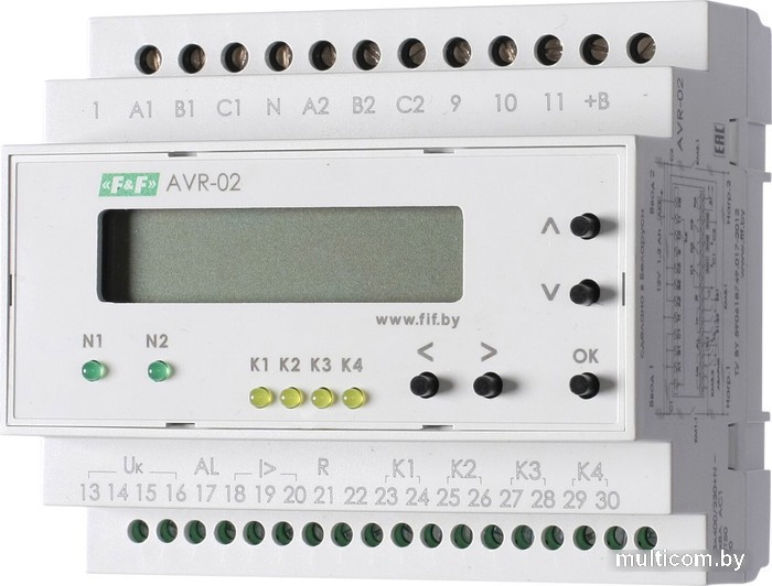 | Информация | Для работы в составе блоков: АВР 2.0; АВР 2.1; АВР 2.2; АВР 3.0; АВР 3.1. Устройство управления AVR-02 предназначено для построения блоков АВР с двумя или тремя вводами питания (генераторной установкой), с секционными выключателями, с одной или двумя нагрузками. Функциональные возможности устройства AVR-02 Контроль наличия фаз. Контроль минимального и максимального напряжения в фазах. Контроль чередования, слипания фаз. Контроль асимметрии фаз. Управление контакторами и моторными приводами. Контроль состояния контакторов (моторных приводов). Контроль срабатывания выключателей по сверхтоку. Формирование напряжения оперативного питания. Формирование сигнала запуска генератора. Формирование сигнала «Авария». Ограничение доступа к настройкам вводом PIN-кода. Пуско-наладочный режим. Возможность работы от внешнего источника питания. Сохранение работоспособности в диапазоне напряжений от 24 до 450 В. Использования в однофазных цепях. Функции блоков АВР на устройстве AVR-02 Автоматического включения резервного питания в соответствии с заданным алгоритмом. Защиты потребителей напряжением до 400 В. Установки времени срабатывания АВР при отключении и восстановлении основного питания. Ручного управления исполнительными аппаратами. Индикации наличия и качества напряжения на вводах. Индикации состояния («включено», «отключено», «авария») исполнительных аппаратов. Индикации режимов работы. Электрических и программных блокировок исполнительных аппаратов при различных режимах работы. Противопожарного отключения исполнительных аппаратов. Контроль резервной линии от генератора. |