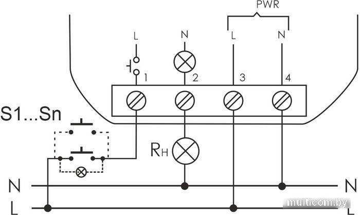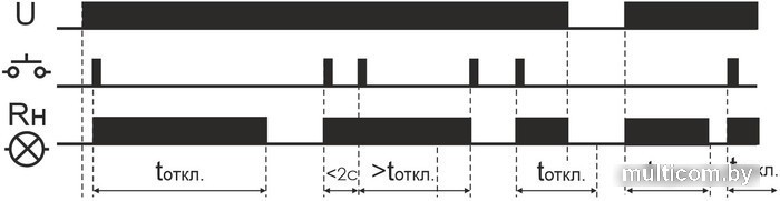 | Информация | Предназначено для управления одной нагрузкой, включение/выключение освещения, электроустановки и т.п. из нескольких мест выключателями кнопочного типа, параллельно соединенными между собой. Таймер времени реле обеспечивает выключение нагрузки через настраиваемый интервал времени в диапазоне от 1 до 12 минут. Особенности: таймер времени с настраиваемой задержкой выключения в интервале от 1 до 12 минут; память состояния контактов; возможно подключение выключателей кнопочного типа с подсветкой; максимальный ток нагрузки 8 А; для исключения самопроизвольного срабатывания реле от наводок силовых цепей питания рекомендуется между нейтралью (N) и управляющим входом реле (контакт 1) установить конденсатор емкостью 0.15…0.33 мкФ 275 АС. Область применения Освещение проходных помещений: длинных коридоров, лестничных маршей и т.д., управление включением/выключением электроустановки, где требуется задержка выключения в пределах определенного интервала времени. |