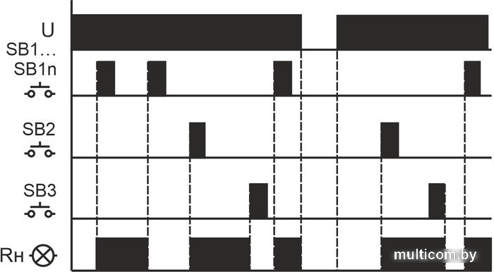 | Информация | Предназначено для управления одной нагрузкой: включения/выключения освещения, электроустановок и т.п. из нескольких мест выключателями кнопочного типа, параллельно соединенными между собой. У реле три независимых входа управления, что позволяет использовать для группового режима работы. Реле объединяются в группы, включение и выключение групп реле осуществляется по групповым входам, а управление отдельным реле в группе - по индивидуальному входу. Например, включение и выключение освещения всех этажей гостиницы (групповые входы) или управление освещением каждого этажа (индивидуальные входы). Особенности: гальваническая развязка между исполнительными реле (сухой контакт) и цепью питания; нет память контактов; возможно подключение выключателей кнопочного типа с подсветкой; максимальный ток нагрузки 16 А, кратковременная коммутация нагрузки с большим пусковым током (120A/20ms). Область применения Освещение проходных помещений: длинных коридоров, лестничных маршей и т.д. (включение на входе, выключение на выходе), управление включением/выключением электроустановки. |