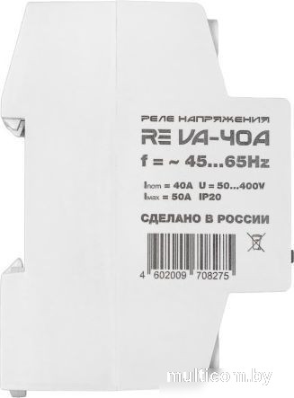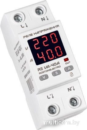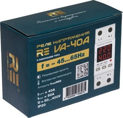 | Информация | Реле напряжения серии VA (32А, 40А, 50А, 63А) Реле напряжения с защитой от перегрузок по току RE серии VA предназначено для защиты электрического оборудования от скачков напряжения в сети, обрыва нулевого провода и превышения тока в цепи потребителей. Реле напряжения RE серии VA может работать как с бытовой электросетью с частотой 50Гц, так и источниками напряжения с нестабильной «плавающей» частотой (генераторы и др.). Для этого в меню настроек нужно выбрать соответствующий режим работы Эти приборы существенно увеличивает срок эксплуатации бытовой техники и прочего электрооборудования. Прибор совмещает в себе функционал нескольких устройств: реле напряжения; реле тока (ограничителя мощности). амперметра; вольтметра; ваттметра Основные особенности: Работа при плавающей частоте в пределах 45-65 ГЦ. Эта функция – незаменима при использовании реле в сети с генератором, как источником резервного или постоянного питания. Возможность изменения ограничения по току с шагом 1А от номинального. Эта функция дает возможность применять реле, когда требуется уменьшить порог или использовать не стандартные значения. Полноценный транзит нуля (шина 16 кв.мм). Возможность калибровки показаний вольтметра. Блокировка кнопок от случайного нажатия. Вывод на экран значения потребляемой мощности, наряду со значениями напряжения и силы тока. Скорость обработки показаний сети обеспечивает современные микроконтроллер Microchip, работающий на частоте 32 МГц! True RMS. Внутренняя термозащита с возможностью контроля в настройках. Размер 2-din. Полностью цифровое управление. Четко читаемые показания сети на дисплее. Настройка комфортного значения яркости дисплея. Принцип работы и характеристики: Измерительный блок на основе микропроцессора Microchip регистрирует и анализирует величину напряжения в сети, выявляя отклонения от установленных при настройке значений. При выходе показателей за эти пределы формируется сигнал на отключение и исполнительное устройство (реле с постоянно разомкнутым контактом для REVA, а для всех остальных – импульсное реле ) отключает нагрузку, тем самым предотвращая попадание на вход критических напряжений. Нагрузка включается автоматически после возвращения напряжения в установленный диапазон через установленный пользователем (по умолчанию 15 сек) промежуток времени. Кроме того, прибор контролирует величину тока подключенной нагрузки и по аналогии с вводным автоматом. Технические параметры VA-32A VA-40A VA-50A VA-63A Номинальный ток нагрузки* (максимальный ток в течении не более 10 мин), А 32(40) 40(50) 50(63) 63(80) Номинальная (долговременная) мощность*, кВт *- при активной нагрузке 7,0 8,8 11,0 13,9 Рабочее напряжение, В 50-400 Пределы измеряемого тока, А 1-63 Рабочая частота сети, Гц 45-65 Верхний предел отключения по напряжению (программируется), В 210-270 (250**) Нижний предел отключения по напряжению (программируется), В 120-200 (170**) Время задержки включения (программируется), сек 5-600 (15**) Время отключения по верхнему пределу напряжения, сек, не более 0,02 Время отключения по нижнему пределу напряжения, сек, не более 1 (120-170В) 0,02 ( |