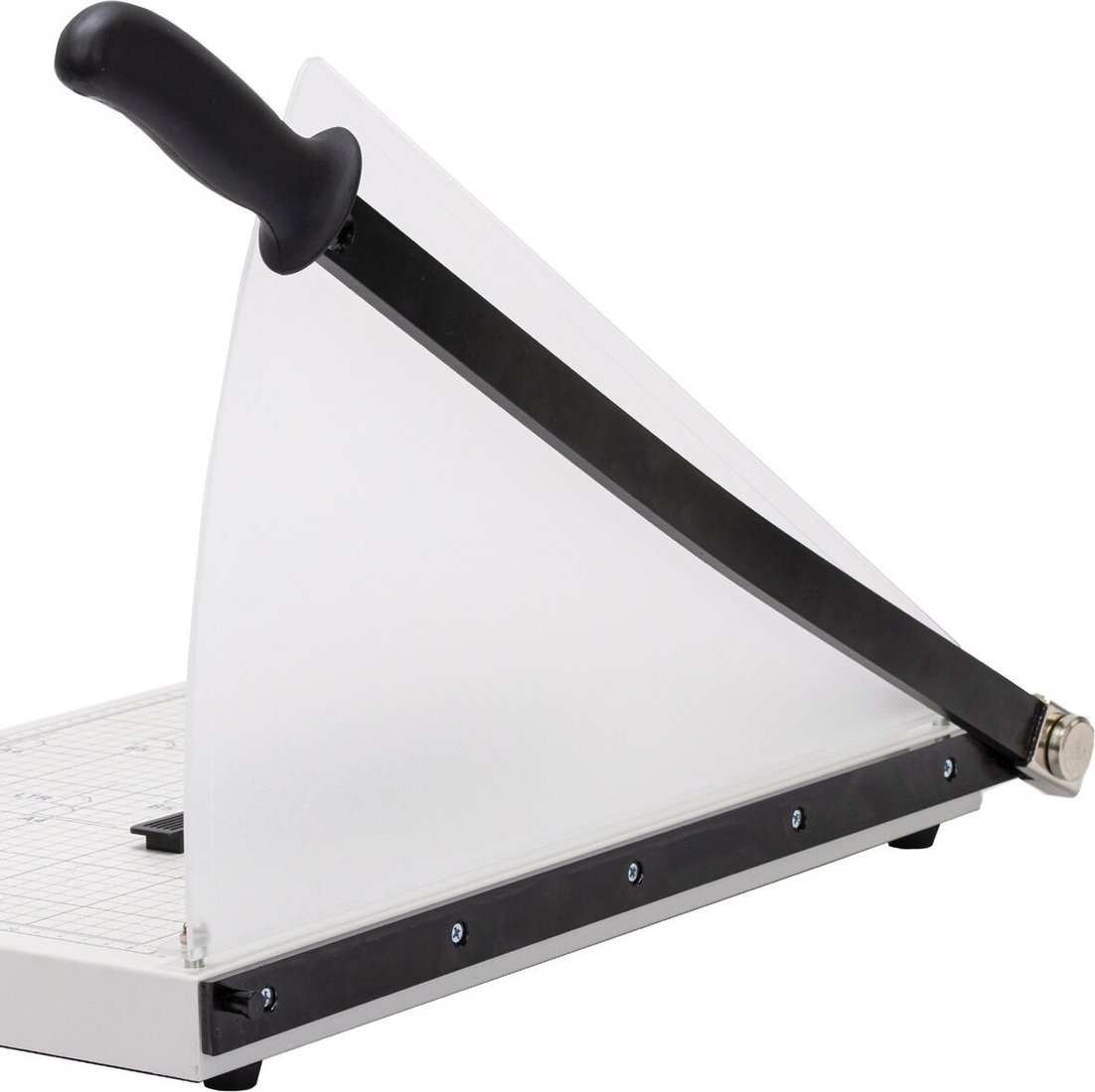 | Информация | Сабельный резак для бумаги подходит для домашнего и офисного применения. Позволяет одновременно разрезать до 12 бумажных листов формата А3. Оснащен безопасным лезвием, регулируемым магнитным упором и прижимом для бумаг. Рукоятка анатомической формы препятствует соскальзыванию руки, а специальное крепление для рукояти зафиксирует её в закрытом положении и предотвратит непреднамеренное поднятие. В резак встроен возвратный механизм, который автоматически поднимает лезвие вверх, что значительно экономит силы при длительном использовании. Пластиковый защитный экран высотой 22 см сделает работу за резаком максимально безопасной. Удобная разметка рабочей поверхности позволяет точно наметить линию реза. Длина реза составляет 440 мм. Также имеются уголки для форматов А3, B4, А4, B5, А5, B6, B7. Резиновые ножки вкупе с прочным металлическим основанием предотвращают скольжение по рабочему столу во время эксплуатации. С сабельным резаком для бумаги выполнять повседневные задачи станет проще, чем когда-либо. Приобретите его и убедитесь в этом сами. |