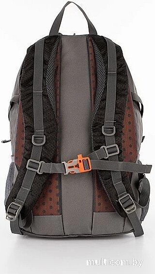 | Информация | Туристический рюкзак от торговой марки из текстильного материала в сочетании серого и черного цвета. Функциональная модель с лямкой-переноской и набивными регулируемыми плечевыми лямками анатомической формы с нагрудным фиксатором на застежке фастекс со свистком, с лямками и кольцами для крепления снаряжения. Уплотненная спинка с вентилируемыми накладками. Два отделения на молнии, с текстильной подкладкой. В основном отделении — накладной карман. На лицевой стороне — вертикальный карман на молнии с тесьмой из светоотражающего материала, повышающего безопасность в темное время. По бокам — карман-сетка, стягивающие ремни, резинки со стоппером, снизу — две петли для крепления. |