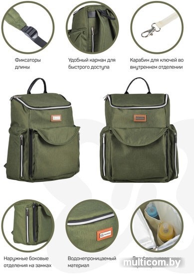 | Информация | Модель идеальна подходит не только мамам, но и людям с активной жизненнной позицией: благодаря своей вместительности, функциональности и внешнему виду, рюкзак удобен для прогулок и поездок за город, похода в спортзал. Универсальные цвета подходят как для женщин, так и для мужчин. Многофункциональный и удобный рюкзак станет незаменим помощником для родителей. Главная особенность этой модели в наличии большой непромокаемой пелёнки, которая замаскирована под отделение на кнопке и надёжно крепится к рюкзаку. Теперь мама может переодеть малыша в любом месте! Особенности модели: 1. Рюкзак выполнен из качественной водонепроницаемой ткани, оснащен множеством карманов и отделов: для бутылочек, соски, документов, шнурком для ключей. 2. Наружные боковые отделения на замках для быстрого извлечения нужных мелочей, телефона или салфеток. 3. В рюкзаке есть два теплоизоляционных кармана, которые сохраняют температуру детского питания и напитков до 3 часов. 4. Рюкзак можно носить и на плечах (регулируемые по высоте плечевые ремни мягкие и широкие, не перетирают во время использования) или в руках в виде сумочки. |