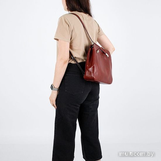 | Информация | Стильная женская сумка-рюкзак необычной формы от Francesco Molinary выполнена из натуральной кожи, дополнена серебристой фурнитурой и тисненым логотипом бренда. Имеет одно основное отделение с текстильной отделкой, закрывается на молнию. Внутри: средник на молнии, карман на молнии для документов, кармашки без застежки для телефона и мелочей. Снаружи: карман на молнии. |