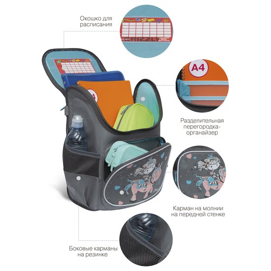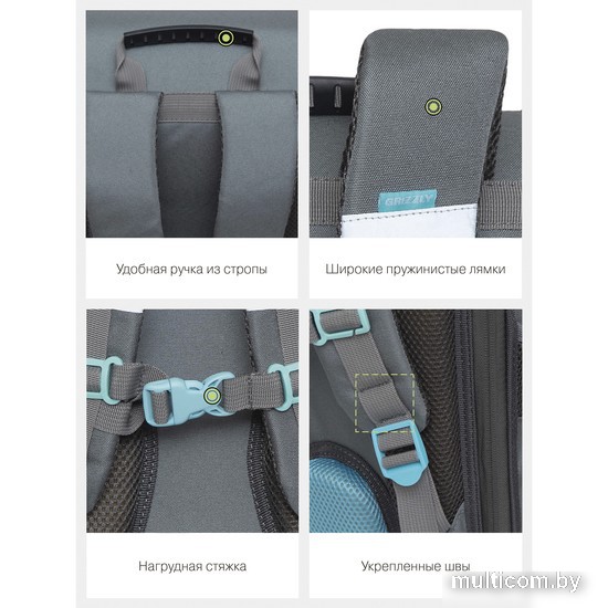 | Информация | Что самое главное при выборе ранца? Конечно жесткость конструкции, эргономичная спинка и удобные широкие лямки, которые сохраняют осанку здоровой. Мы разработали легкий ранец GRIZZLY серии RAl для детей школьного возраста с эргономической спинкой. Ранец рассчитан на рост от 120 до 130 см. Жесткая конструкция, эргономичная спинка, лямки анатомической формы и нагрудная стяжка со свистком равномерно распределяют вес по спине ребенка. Ранец полностью раскладывается. Жесткая конструкция не деформируется при нагрузке и создает надежную защиту содержимого. У ранца одно большое отделение с разделителем для учебных пособий формата А4, передний карман на молнии для мелочей, твердое дно с резиновыми ножками и два вместительных боковых кармана. Со всех сторон есть отражатели — ребенка в темноте точно заметят. За счет водо- и грязеотталкивающей пропитки ранец долго остается как новый. Если он все же чем-то испачкался, мы рекомендуем ручную стирку в холодной воде. |