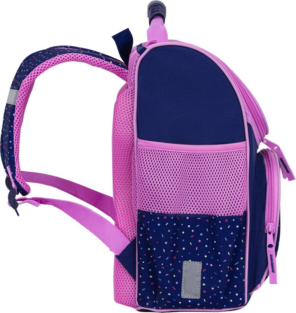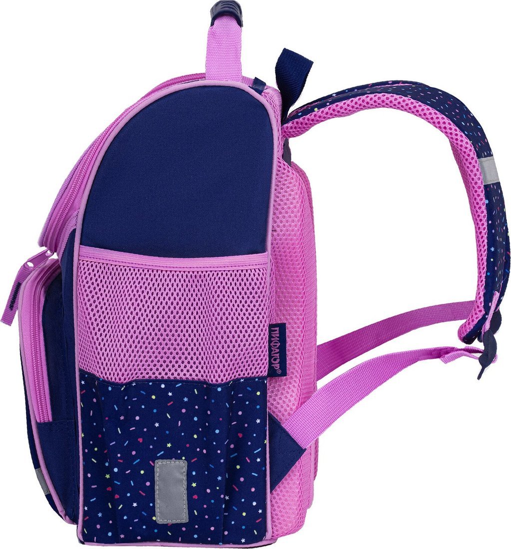 | Информация | - Basic — идеальный ранец для начальной школы, созданный из прочного полиэстера плотностью 300 D с качественной печатью. Регулируемые S-образные лямки позволяют подогнать ранец под рост ребенка, обеспечивая комфорт даже при значительном весе учебников и канцтоваров. - Удобная вентилируемая спинка с мягкими спонжевыми панелями учитывает анатомические особенности детей, что способствует правильной осанке. Равномерное распределение нагрузки делает ношение ранца легким и приятным. - Основное отделение ранца позволяет быстро разместить учебники и тетради, а прижимные перегородки на резинке помогут организовать пространство. Внутри есть карабин для ключей и специальный вкладыш для расписания уроков. Открывать и закрывать ранец можно одной рукой благодаря долговечной реверсивной молнии с двумя бегунками. - Носить ранец удобно как на плечах, так и в руке за прочную ручку. Специальная петелька из нейлоновой нити позволяет подвешивать ранец на крючок парты. Боковые карманы на резинке идеально подходят для бутылочки или термоса. - Безопасность ребенка в темное время суток обеспечивают светоотражающие элементы на переднем кармане, торцах и лямках, а также специальная лента на верхней крышке. Дно ранца защищено плотным полиуретаном от влаги. Упаковка в ПЭТ-пакет с замком Zip Lock гарантирует сохранность товара при хранении и транспортировке. |
