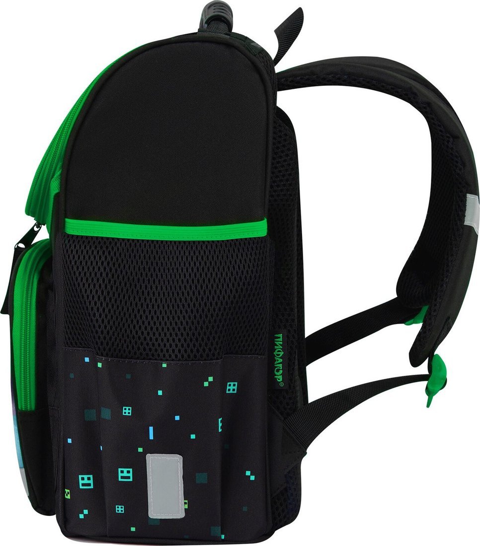 | Информация | - Basic — идеальный ранец для начальной школы, созданный из прочного полиэстера плотностью 300 D с качественной печатью. Регулируемые S-образные лямки позволяют подогнать ранец под рост ребенка, обеспечивая комфорт даже при значительном весе учебников и канцтоваров. - Удобная вентилируемая спинка с мягкими спонжевыми панелями учитывает анатомические особенности детей, что способствует правильной осанке. Равномерное распределение нагрузки делает его идеальным выбором для ежедневного использования. - Основное отделение ранца позволяет быстро разместить учебники и тетради, а прижимные перегородки на резинке помогут организовать пространство. Внутри есть карабин для ключей и специальный вкладыш для расписания уроков. Открывать и закрывать ранец можно одной рукой благодаря долговечной реверсивной молнии с двумя бегунками. - Носить ранец удобно как на плечах, так и в руке за прочную ручку. Специальная петелька из нейлоновой нити позволяет подвешивать ранец на крючок парты. Боковые карманы на резинке идеально подходят для бутылочки или термоса. - Безопасность ребенка в темное время суток обеспечивают светоотражающие элементы на переднем кармане, торцах и лямках, а также специальная лента на верхней крышке. Дно ранца защищено плотным полиуретаном от влаги. Упаковка в ПЭТ-пакет с замком Zip Lock сохраняет товарный вид и качество изделия при хранении и транспортировке. |