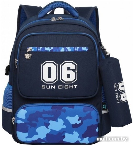 | Информация | Стильный школьный рюкзак Sun eight SE-2757 станет изюминкой в образе любого школьника. Его поверхность украшена яркими узорами, логотипами бренда и светоотражающими элементами. Он имеет жесткую форму и выполнен из плотного износостойкого материала. Дно рюкзака — прочное и устойчивое, спинка — мягкая и сетчатая, что позволяет воздуху свободно циркулировать. Лямки — мягкие и широкие, регулируются по длине. Две верхние ручки — надежно прошиты и удобны для переноски в руках. В комплекте с рюкзаком Sun eight идет небольшой пенал на молнии. Он украшен логотипом и выполнен из такого же материала, как и рюкзак. С помощью карабина прикрепляется на кольцо, расположенное на фронтальной части рюкзака. Здесь же рюкзак содержит два объемных кармана на молниях. По бокам размещаются два сетчатых кармана на резинках. Внутри модели SE-2757 предусмотрено вместительное основное отделение, которое закрывается на двойную молнию. К слову, все молнии имеют фигурные металлические наконечники. В отделении располагается большое количество карманов, в том числе — на молнии. |