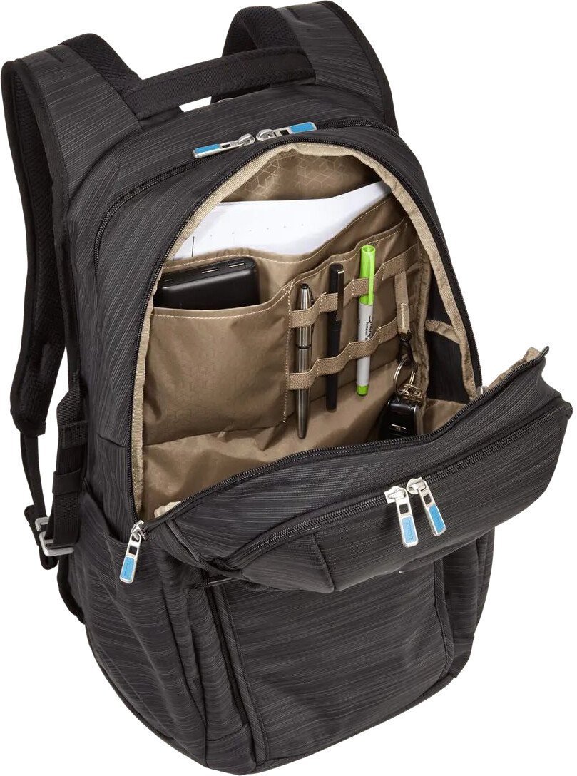 | Информация | - Рюкзак для ноутбука Thule Construct — идеальный спутник для тех, кто ценит стиль и функциональность. Он оснащен специальным отделением с мягкой подкладкой, которое надежно защитит ваш ноутбук с диагональю до 15,6 дюйма и планшет до 10,5 дюйма. Теперь вы можете быть уверены, что ваши устройства в безопасности во время поездок. - В рюкзаке предусмотрен защитный карман для телефона или очков, что делает его отличным выбором для активных пользователей. Главный отсек включает карман для хранения файлов и множество дополнительных карманов для аксессуаров, что позволяет организовать пространство максимально эффективно. - Стягивающие ремни на внешней стороне рюкзака позволяют удобно фиксировать дополнительные аксессуары или некрупные предметы. Внутренний сетчатый карман на молнии идеально подходит для хранения кабелей и ключей, чтобы они всегда были под рукой. - Передний вертикальный карман обеспечивает легкий доступ к предметам, которые могут понадобиться в пути. Боковой карман на молнии надежно хранит небольшие вещи и кабели, а растягивающийся боковой карман идеально подходит для бутылки с водой. - Рюкзак также оснащен специальным ремнем для крепления к чемодану на колесиках, что делает его незаменимым для путешествий. Изготовленный из прочных, водостойких материалов, он дополнен стильными металлическими деталями и надежными молниями YKK. - Мягкая задняя панель из «дышащих» материалов и ручка с мягкой подкладкой обеспечивают комфорт при переноске, что делает рюкзак Thule Construct отличным выбором для ежедневного использования и путешествий. Этот рюкзак станет вашим надежным помощником в любых ситуациях, будь то поездка на работу или путешествие. |