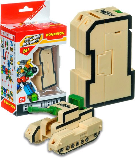 | Информация | Бондиботы от Bondibon - это настоящий Цифровой переворот в мире трансформеров! Любой бондибот за считаные минуты трансформируется из супер-транспорта в ту или иную цифру! Проявив смекалку, ребенок сможет самостоятельно собирать и разбирать сколько угодно раз робота-трансформера - бежевый танк из цифры 1. В процессе игры ребенок развивает мелкую моторику, пространственное и образное мышление, тренирует воображение а также дает первые представления о математике и числах. |