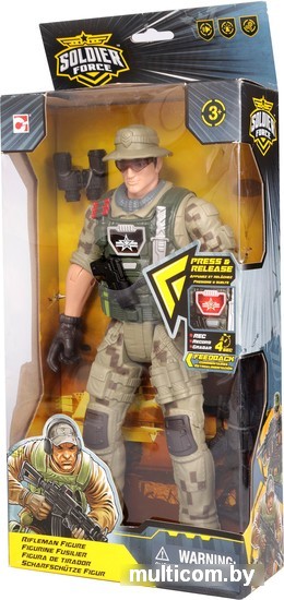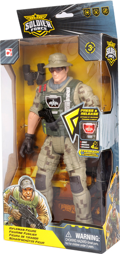 | Информация | Подвижная фигурка Солдат стрелок от ЧАП МЕЙ понравится поклонникам военной тематики. В наборе большой устойчивый солдат высотой 30 см, у которого двигаются голова, руки, локти, кисти, ноги и колени. Стрелок оснащен функцией записи и воспроизведения голоса 5 секунд, при нажатии на кнопку. Также в наборе есть винтовка М-16, которую можно зафиксировать в руке солдата и бинокль, крепящийся к обмундированию. |