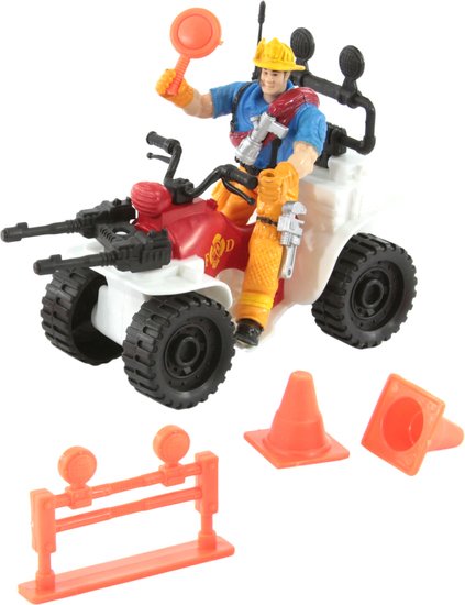 | Информация | Игровой набор "Спасательный отряд патрульный команды на квадроцикле"- это лучший подарок для ребенка. В наборе идет фигурка пожарного 10 см (подвижный:руки, ноги) и красно белый квадроцикл 11 см с крутящимися колесами и имитацией водяных пушек и аксессуарами. |