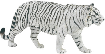 | Информация | ? Белый тигр 88790b - это фигурка особи с врожденной мутацией, которая привела к белой окраске с черно-коричневыми полосами. Этот редкий окрас обусловлен недостатком меланина и встречается лишь в 1 случае на 10000 с нормальным окрасом. ? Белые тигры крупнее, сильнее, ловчее и быстрее своих рыжих собратьев. Обитали в Индии, Бангладеш, Непале, но сейчас встречаются только в заповедниках и зоопарках, так как занесены в Красную книгу. ? Фигурки выполнены с соблюдением пропорций и имеют детально проработанную фактурную поверхность туловища, имитирующую реальные позы и выражения животных. |