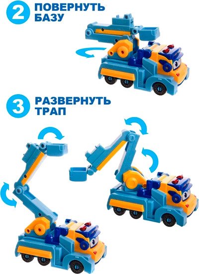 | Информация | ? Яркий синий грузовик с трапом из серии строительных машин по мотивам мультсериала Команда Steam и Автобус Гордон. ? Машина имеет подвижный трап, веселую мордочку, желтые вставки, безопасные углы и прочные колеса. ? При нажатии на кнопку, выражение глаз машины меняется. ? Все машинки из серии отличаются высокой износоустойчивостью и оснащены подвижными элементами. ? Собрав все шесть машинок, можно создать большого робота 33 см. ? Машинка поможет развивать мелкую моторику рук, логическое мышление, воображение и координацию. |