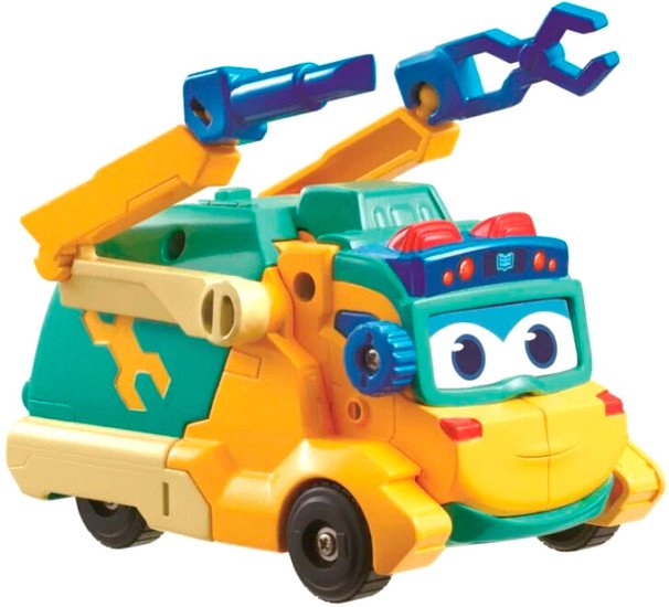 | Информация | ? Яркая машина ремонтный грузовик из серии строительные машины по мотивам мультсериала Команда Steam и Автобус Гордон. ? Машинка имеет яркий желтый цвет корпуса, желтые и бирюзовые элементы, специальные подвижные захваты, веселую мордочку, а также закругленные безопасные углы и прочные колеса. ? При нажатии на кнопку, машина меняет выражение глаз, что придает ей дополнительный шарм. ? Все машинки строительной техники отличаются высокой износоустойчивостью и оснащены подвижными элементами, такими как трап или кран у грузовика, ковш у бульдозера, подвижные элементы у автобуса и др. ?? Если собрать все шесть машинок линейки, то можно будет собрать одного большого робота высотой 33 см. ? Машинка поможет развивать мелкую моторику рук, логическое мышление, воображение и координацию у малыша. |