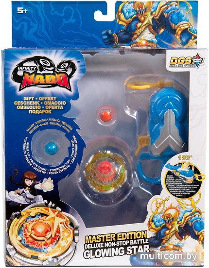 | Информация | Волчки Инфинити Надо серии Мастер принадлежат истинным Мастерам НАДО – профессорам Академии Надо факультетов Атаки, Защиты и Выносливости. Волчок Сияющая Звезда принадлежит профессору факультета Выносливости. Благодаря усовершенствованному наконечнику на пружине волчок Сияющая Звезда становится более маневренным в бою и неуязвимым для атак противника. Волчок Infinity Nado линейки Мастер состоит из 5 основных частей: аватара Надо, кристалла, атакующего кольца, защитного кольца и наконечника. Эти элементы являются взаимозаменяемыми со всеми волчками серий Классик, Ориджинал, Адвансд и Алтимейт. Основная особенность пусковой установки Мастер состоит в том, что её можно перевернуть на 180 в самый неожиданный для противника момент! |
