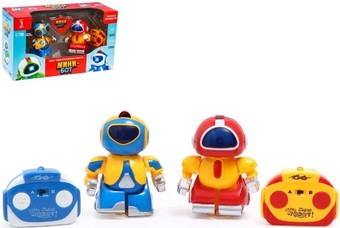 | Информация | «Минибот» умеет двигаться вперёд, назад и разворачиваться при движении задним ходом. Ребёнок будет играть с роботом, используя пульт радиоуправления, или устраивать состязания с товарищем. Для этого необходимо лишь настроить пульт и робота на определённую волну и начать поединок! Каждый робот работает от 3 батареек типа AG13, каждый пульт — от 2 батареек типа AG13. Элементы питания входят в комплектацию. |