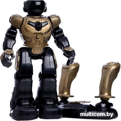 | Информация | Радиоуправляемый робот «Герой» — это боевой друг. Вместе с ним малыш справится с любой задачей и спасёт мир! Нестандартный пульт управления — в формате двух джойстиков. Говорит фразы. Поёт песни. Светятся глаза. Передвигается в любую сторону. Игрушка озвучена на русском языке. Для детей старше 3 лет. |