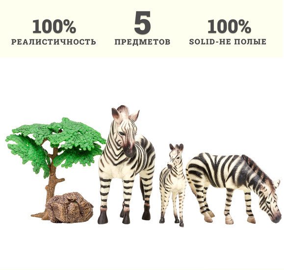 | Информация | Фигурки семья зебр являются уменьшенными копиями реальных животных. Фигурки выполнены из высококачественного литого цветного пластика. Игрушка не боится механического воздействия, и надолго сохраняет первоначальный внешний вид. Мелкие детали фигурок прорисовываются вручную безопасными и устойчивыми к внешнему воздействию красителями. Данная технология позволяет получить максимальное сходство с животным. В комплект входят: 2 зебры (12х2,5х7 см; 12х3х13 см), зебренок (8х2х8 см), дерево (10х3х2 см), камень (4х4х2 см). К набору идеально подойдут другие животные бренда, выполненные в едином стиле. Набор идеально подходит и в качестве обучающего материала и для увлекательных сюжетных игр детей. Игры с фигурками помогут ребенку познакомиться с миром животных, развивают мышление, фантазию, учат бережно относиться к окружающему миру. Набор фигурок – прекрасный подарок на День рождения или любой другой праздник. |