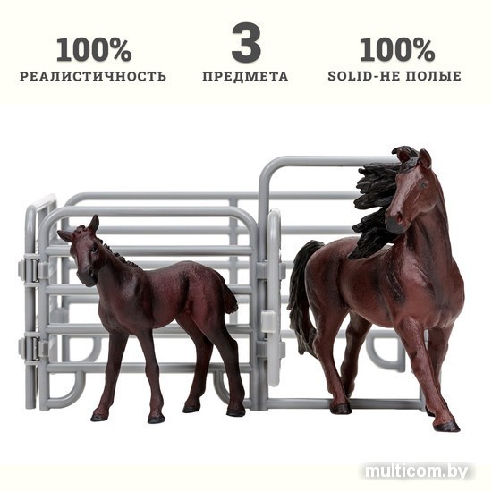 | Информация | Фигурки лошадки и жеребенка являются уменьшенными копиями реальных животных. Фигурки выполнены из высококачественного литого цветного пластика. Игрушка не боится механического воздействия, и надолго сохраняет первоначальный внешний вид. Мелкие детали фигурок прорисовываются вручную безопасными и устойчивыми к внешнему воздействию красителями. Данная технология позволяет получить максимальное сходство с животным. В комплект входят: лошадь (16х3,5х12 см), жеребенок (9 х3х8 см), загон (10х15х15 см). К набору идеально подойдут другие животные бренда, выполненные в едином стиле. Набор идеально подходит и в качестве обучающего материала и для увлекательных сюжетных игр детей. Игры с фигурками помогут ребенку познакомиться с миром животных, развивают мышление, фантазию, учат бережно относиться к окружающему миру. Набор фигурок – прекрасный подарок на День рождения или любой другой праздник. |