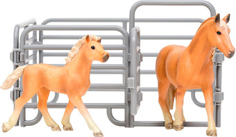 | Информация | Фигурки лошадки и жеребенка являются уменьшенными копиями реальных животных. Фигурки выполнены из высококачественного литого цветного пластика. Игрушка не боится механического воздействия, и надолго сохраняет первоначальный внешний вид. Мелкие детали фигурок прорисовываются вручную безопасными и устойчивыми к внешнему воздействию красителями. Данная технология позволяет получить максимальное сходство с животным. В комплект входят: лошадь (13х3,5х10 см), жеребенок (9,5х3х8 см), загон (10х15х15 см). К набору идеально подойдут другие животные бренда, выполненные в едином стиле. Набор идеально подходит и в качестве обучающего материала и для увлекательных сюжетных игр детей. Игры с фигурками помогут ребенку познакомиться с миром животных, развивают мышление, фантазию, учат бережно относиться к окружающему миру. Набор фигурок – прекрасный подарок на День рождения или любой другой праздник. |
