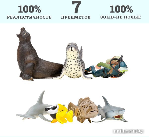 | Информация | Фигурки акулы, тюленя, рыба-лисы, морского льва, рыбы-молота и рыбы групер дайвера являются уменьшенными копиями реальных животных. Фигурки выполнены из высококачественного литого цветного пластика. Игрушка не боится механического воздействия, и надолго сохранят первоначальный внешний вид. Мелкие детали фигурок прорисовываются вручную безопасными и устойчивыми к внешнему воздействию красителями. Данная технология позволяет получить максимальное сходство с животным. В комплект входят акула, тюлень, рыба-лиса, морской лев, рыба-молот и рыба групер дайвер К набору идеально подойдут другие животные бренда, выполненные в едином стиле. Набор идеально подходит и в качестве обучающего материала и для увлекательных сюжетных игр детей. Игры с фигурками помогут ребенку познакомиться с миром животных, развивают мышление, фантазию, учат бережно относиться к окружающему миру. Набор фигурок – прекрасный подарок на День рождения или любой другой праздник. |