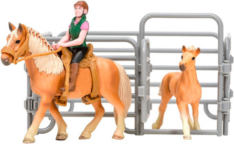 | Информация | Masai Mara Игрушки фигурки серии На ферме (6 предметов) • Набор фигурок являются уменьшенными копиями реальных животных, людей и зданий. • Все предметы игрового набора выполнены из высококачественного литого цветного пластика. • Игрушка не боится механического воздействия, и надолго сохранят первоначальный внешний вид. • Мелкие детали фигурки прорисовываются вручную безопасными и устойчивыми к внешнему воздействию красителями. • Под ногами фигурок имеется имитация земли/травы для большей устойчивости фигурки. • Данная технология позволяет получить максимальное сходство с реальными животными. • В комплект входит 4 предмета: лошадь(13х3,5х10 см), жеребенок (8х9,5х3 см), фигурка наездницы (6х3х3 см), загон (10х15х15 см), седло - 1 шт., сбруя - 1 шт. • К набору идеально подойдут другие животные бренда, выполненные в едином стиле. • Набор идеально подходит и в качестве обучающего материала и для увлекательных сюжетных игр детей. • Игры с фигурками помогают ребенку познакомиться с животными на ферме, развивают мышление, фантазию, учат бережно относиться к окружающему миру. • Набор фигурок – прекрасный подарок на День рождения или любой другой праздник. |