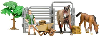| Информация | Masai Mara Игрушки фигурки На ферме (лошадь и жеребенок, фермер, дерево, ограждение-загон, инвентарь) • Набор фигурок являются уменьшенными копиями реальных животных, людей и зданий. • Все предметы игрового набора выполнены из высококачественного литого цветного пластика. • Игрушка не боится механического воздействия, и надолго сохранят первоначальный внешний вид. • Мелкие детали фигурки прорисовываются вручную безопасными и устойчивыми к внешнему воздействию красителями. • Под ногами фигурок имеется имитация земли/травы для большей устойчивости фигурки. • Данная технология позволяет получить максимальное сходство с реальными животными. • В комплект входит 8 предметов: лошадь (17,5x3,5x10 см), жеребенок (10x3x7 см), фигурка женщины (6х3х3 см), тачка (7х3,5х3,5 см), мешок (3х3,5х2 см), дерево (10х3х3 см), загон (10х15х15 см), сено (4х3х2 см). • К набору идеально подойдут другие животные бренда, выполненные в едином стиле. • Набор идеально подходит и в качестве обучающего материала и для увлекательных сюжетных игр детей. • Игры с фигурками помогают ребенку познакомиться с животными на ферме, развивают мышление, фантазию, учат бережно относиться к окружающему миру. • Набор фигурок – прекрасный подарок на День рождения или любой другой праздник. |