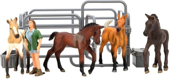 | Информация | Masai Mara Игрушки фигурки На ферме (зоолог, 4 жеребенка, ограждение-загон, инвентарь) • Набор фигурок являются уменьшенными копиями реальных животных, людей и зданий. • Все предметы игрового набора выполнены из высококачественного литого цветного пластика. • Игрушка не боится механического воздействия, и надолго сохранят первоначальный внешний вид. • Мелкие детали фигурки прорисовываются вручную безопасными и устойчивыми к внешнему воздействию красителями. • Под ногами фигурок имеется имитация земли/травы для большей устойчивости фигурки. • Данная технология позволяет получить максимальное сходство с реальными животными. • В комплект входит 8 предметов: жеребята 4 шт. (11x4x9 см, 9x3x8,5 см, 10х9х4 см, 11х8,5х3 см), фигурка фермера (6х3х3 см), ящик с крышкой ( 5,5х3,3х1 см), ящик (6х5,5х1 см), загон (10х15х15 см). • К набору идеально подойдут другие животные бренда, выполненные в едином стиле. • Набор идеально подходит и в качестве обучающего материала и для увлекательных сюжетных игр детей. • Игры с фигурками помогают ребенку познакомиться с животными на ферме, развивают мышление, фантазию, учат бережно относиться к окружающему миру. • Набор фигурок – прекрасный подарок на День рождения или любой другой праздник. |