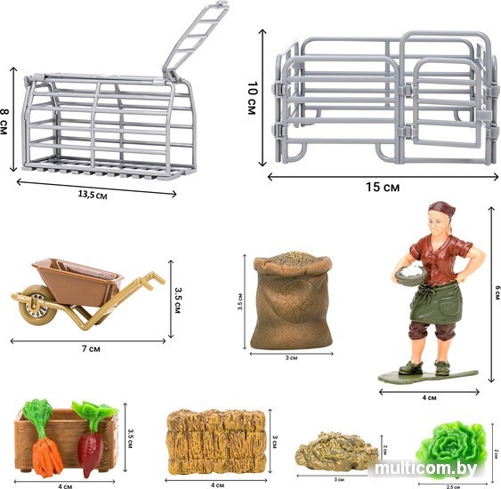 | Информация | ОсобенностиНабор фигурок и игрового домика являются уменьшенными копиями реальных животных, людей и зданий. Большой игровой домик требует быстрой и легкой сборки. Игрушка не боится механического воздействия, и надолго сохранят первоначальный внешний вид. Мелкие детали фигурки прорисовываются вручную устойчивыми к внешнему воздействию красителями. Данная технология позволяет получить максимальное сходство с реальными животными. Под ногами фигурок имеется имитация земли/травы для большей устойчивости фигурки. Набор идеально подходит и в качестве обучающего материала и для увлекательных сюжетных игр детей. Игры с домиком и с фигурками помогают ребенку познакомиться с животными и жизнью на ферме, развивают мышление, фантазию, учат бережно относиться к окружающему миру. Комплектация Игровой набор |
