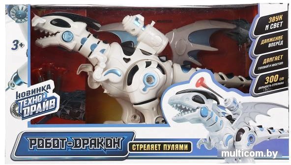 | Информация | - звуковые эффекты - световые эффекты - стреляет пулями - пули в комплекте - дальность стрельбы 300 см - двигается вперёд - двигает головой и хвостом |
