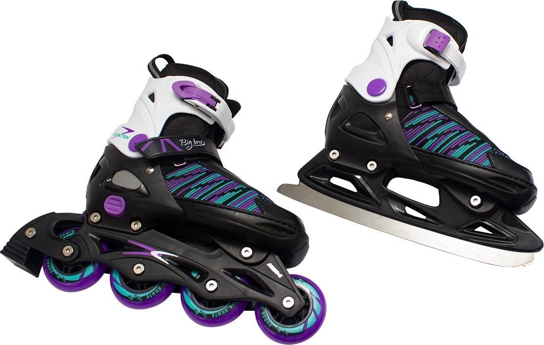 | Информация | Коньки-ролики PW-223B-155-1 2в1 — это удобные и многофункциональные раздвижные коньки, предназначенные для занятий роллер-спортом летом и катания на льду зимой. Черно-фиолетовый цвет добавляет им стильности и элегантности. Ботинки коньков изготовлены из прочного нейлона и имеют усиленный каркас из пластика, который обеспечивает защиту и безопасность стопы. Мягкая подкладка и синтетическая текстильная стелька обеспечивают максимальный комфорт и поддержку ноги во время движения. Конструкция ботинка имеет анатомический крой, который обеспечивает оптимальную фиксацию стопы и защиту от травм. Механизм застежки состоит из шнуровки, клипсы и липучки, который обеспечивает максимальную надежность и комфорт во время катания. Лезвия коньков из нержавеющей стали с защитным напылением обеспечивают отличное качество скольжения на льду, а роликовые подшипники обеспечивают высокую скорость и плавность движения на асфальте. Материал колес на роликовой раме — полиуретан, который обеспечивает отличную амортизацию и прочность. Система раздвижения позволяет адаптировать коньки под длину ноги, что делает их удобной покупкой для быстрорастущих детей. |