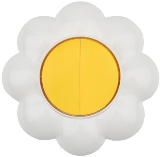 выключатель, скрытый монтаж, винтовая клемма, управление двухклавишное, пластик, цвет накладки: желтый, цвет рамки: белый