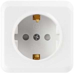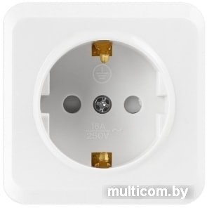 розетка одинарная, накладной монтаж, с заземлением, винтовая клемма, пластик, цвет накладки: белый, цвет рамки: белый