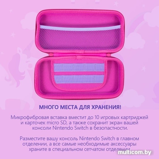 Информация | Отправьтесь со своей Nintendo Switch в приключение вместе со сказочным единорогом!Этот чехол защитит вашу консоль, где бы вы ни находились, ведь его идеальный размер позволяет взять вашу Nintendo Switch даже в путешествия налегке. Корпус чехла выполнен из прочного материала и поможет спасти ваше устройство при случайных падениях, мягкая внутренняя подкладка предотвратит появление случайных царапин, а в кармашках для картриджей ваши любимые игры будут в полной сохранности. На одной стороне чехла удобно хранить вашу консоль, а на другой стороне внутри сетчатого кармана можно разместить необходимые аксессуары. Разработан и создан Numskull Designs из высококачественных материалов. |