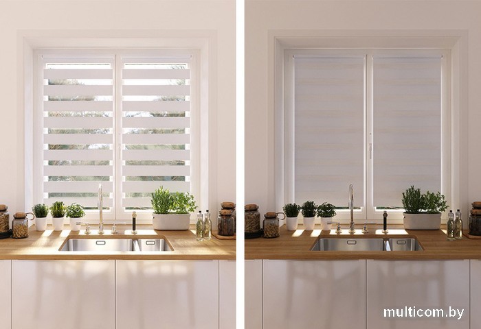 | Информация | Рулонные шторы день-ночь защищают от очень яркого света и бликов. Ролета многофункциональна, имеет 2 режима использования: Режим «День». Полосы полотна чередуются: светопроницаемые и блокирующие свет. В этом случае в комнату попадает 50% света за счет чередования полос. Режим «Ночь». Блокирующие свет участки пересекаются с светопроницаемыми. Таким образом создается максимальное затемнение, за счет перекрытия светопроницаемых полос. Ролету можно повесить как на само окно (без сверления), так и закрыть весь оконный проем. Размеры указаны по ширине полотна. Устойчива к выцветанию, пыле-влаго стойкая. В комплект входят: 1 рулонная штора и крепежные элементы. |