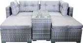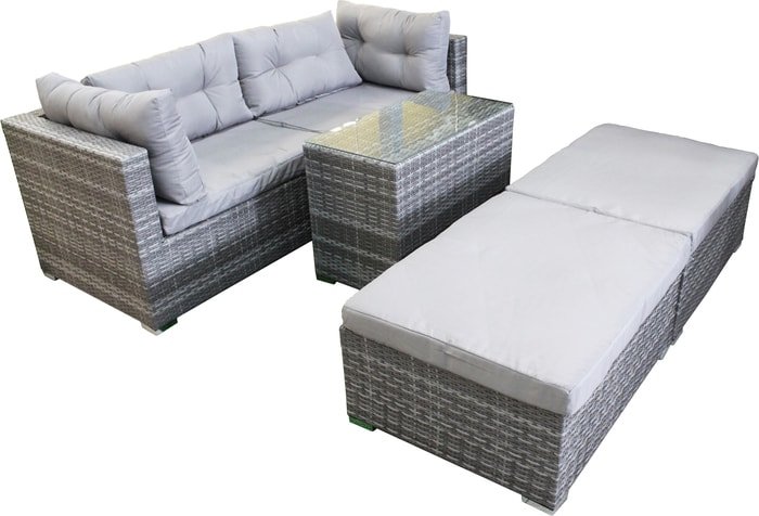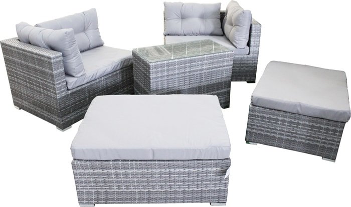 | Информация | Комплект садовой мебели - это мебель для сада со множеством трансформаций! Из модулей можно составить не только большой диван для четырех человек, место для чаепития, но и целую лаунж-зону для приятного времяпровождения. Каркас мебели выполнен из прочной алюминиевой трубы и оплетен искусственным ротангом. Искусственный ротанг гарантирует вам долговременное использование мебели без потери первозданного вида - материал не выгорает на солнце, не боится перепадов температур, отлично переносит сырость. Подушки имеют съемные чехлы из полиэстера, которые легко постирать и они быстро сохнут. Столешница выполнена из закаленного стекла толщиной 5мм. Мебель отлично подойдет для использования на открытой террасе или гармонично будет смотреться в зелени сада.- Размер пуфа 85х65х40- Размер дивана 95х74х64 см- Размер стола 76х40х54 см |