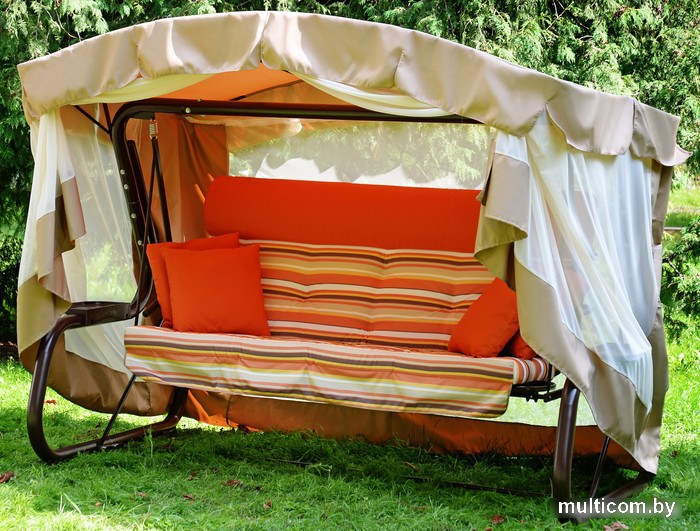 | Информация | ? Регулировка спинки сидения осуществляется путем использования механизма раскладывания. Фиксаторы, находящиеся на спинке, легко защелкиваются на дуге. ? Тент имеет габаритные размеры 2660х1445. ?? Ткань тента состоит из 100% полиэфирного материала с плотностью 289г/м2, что делает её износостойкой и надежной. Противомоскитная сетка (полотно гард. полиэф. пл. 39г/м2) обеспечивает защиту от назойливых насекомых. ? Мягкий элемент изготовлен из ткани 100% полиэфира с плотностью 280 г/м2. Наполнитель мягкого элемента - поролон листовой, а подушки поставляются в комплекте в количестве 4 штук с наполнителем синтепон. |