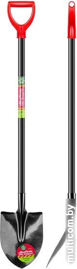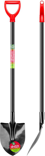 | Информация | Рабочая часть - сталь 65Г. Защитное антикоррозийное покрытие. D - образная рукоятка из высококачественного пластика. Полированный окрашенный черенок из берёзы. Тип "американка". |