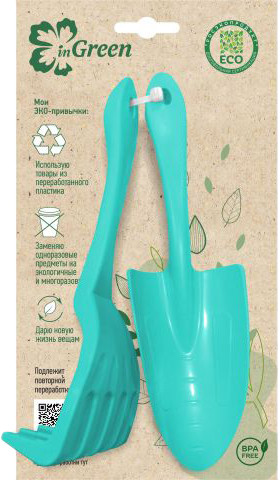 | Информация | ? Набор садовых инструментов inGreen IG601012027 станет отличным помощником в уходе за растениями. ? Лопатка и грабельки выполнены из прочного пластика, подходящего для ухода за комнатными цветами и работ в саду. ? На рабочую часть лопатки нанесена шкала с шагом в 1см, что поможет при посадке семян. ?? Длина лопатки - 21 см ?? Длина грабелек - 19 см |