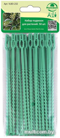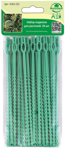 | Информация | ? Набор для подвязки растений Мультидом VL83-232 предназначен для фиксации и подвязки растений. Они плотно фиксируют растения, легко регулируются и не вредят росту. Механизм работает по принципу стяжки, их можно использовать многократно. Также подвязки подходят для крепления проводов и садовых шлангов. |