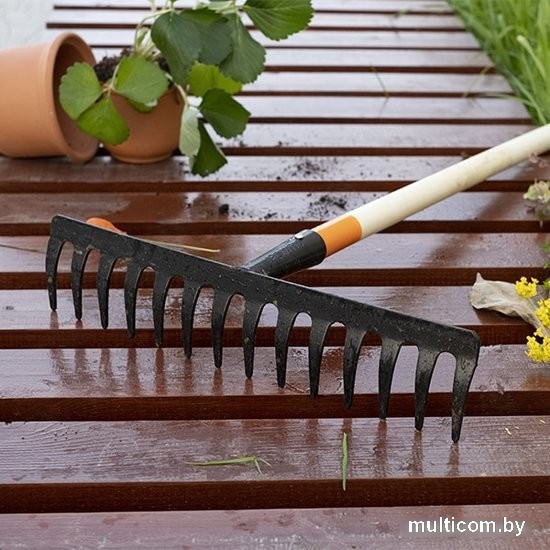 | Информация | Универсальные грабли с деревянным черенком Plantic Terra с 12 зубцами подойдут для уборки мусора, листвы и травы |