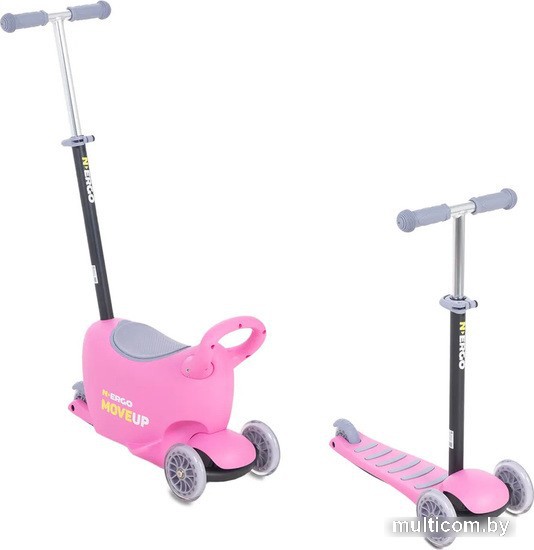 | Информация | Самокат является универсальным средством передвижения, так как сочетает в себе еще и удобную каталку, дополняемую ручкой для управления. Дети помладше смогут комфортно кататься, разместившись на съемном сиденье анатомической формы с ручкой, которое крепится к платформе изделия, и отталкиваясь при этом ножками. Под сиденьем предусмотрен ящик с крышкой для любимых игрушек и аксессуаров, которые пригодятся детям во время катания. Крохе могут помочь родители, толкая каталку перед собой и держась при этом за удобную ручку. А когда малышам надоест сидеть, то они приступят к освоению управления самокатом, которое осуществляется наклонами ручки в нужную сторону. Положение руля регулируется по высоте, что позволяет использовать самокат долгое время, а рельефные ручки с ограничителями покрыты антискользящим рисунком. Рулевая стойка изделия выполнена из прочного алюминия, поэтому не подвержена деформациям и значительно уменьшает вес самоката. Средство передвижения оснащено 3 колесами из высококачественного плотного полиуретана: 2 большего размера спереди и 1 поменьше сзади. Платформа имеет наиболее удобную по высоте позицию, оптимальный размер и дополнена рельефным узором, исключающим соскальзывание ноги при катании. Торможение осуществляется нажатием ноги на специальную пластину, закрепленную над задним колесом. |