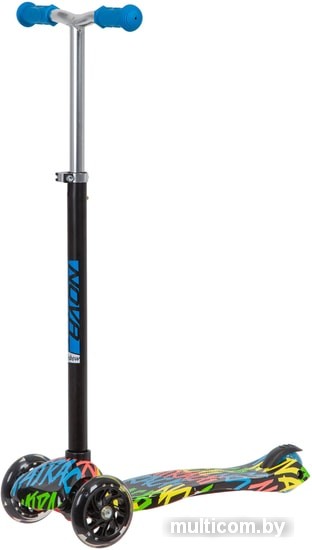 | Информация | Детский трехколесный самокат-кикборд NOVATRACK RAINBOW Start Graffiti с современным и ярким дизайном, понравится вашему ребенку. Полиуретановые колеса износостойкие и прочные. Два колеса спереди и специальный поворотный механизм руля позволяют этому самокату уверенно держатся на асфальтовом покрытии, малыш будет чувствовать в безопасности с первого раза катания на нем. Регулируемый и эргономичный Y-руль легко настроить по росту и вам не придется через год покупать новый самокат. Rainbow прослужит вам несколько лет. |
